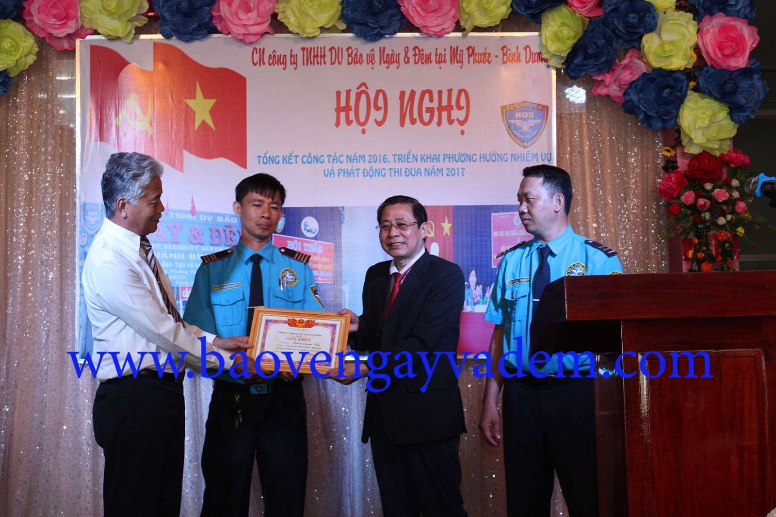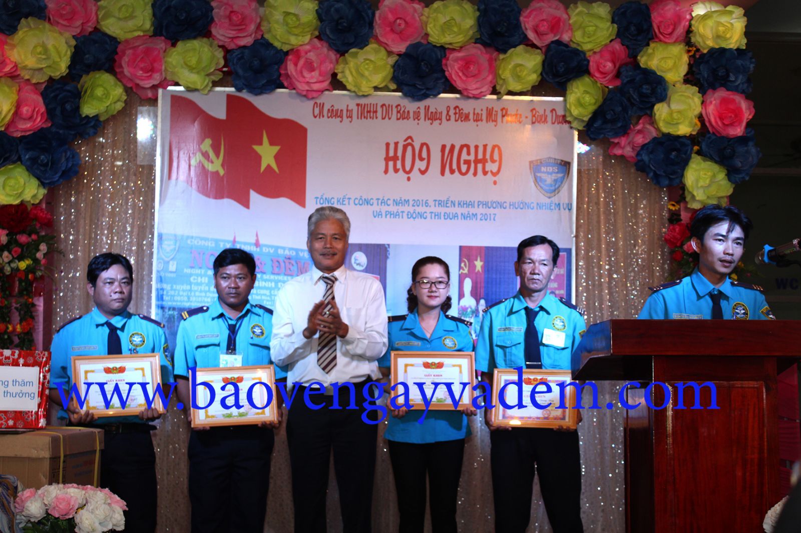 Tại buổi lễ Công ty Bảo vệ Ngày & Đêm chi nhánh Mỹ Phước, Bình Dương đã trao thưởng cán bộ nhân viên đạt thành tích suất sắc nhiệm vụ năm 2016 và tổ chức bốc thăm trúng thưởng với nhiều phần quà có giá trị, tại được không khí vu tươi phấn khởi cho cán bộ nhân viên nhân mừng xuân mới 2017.
