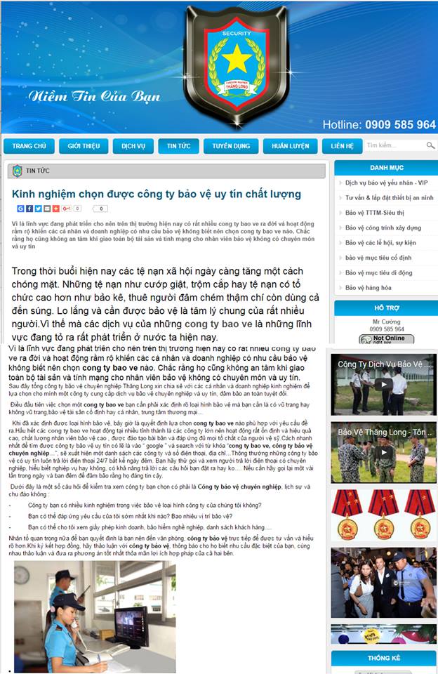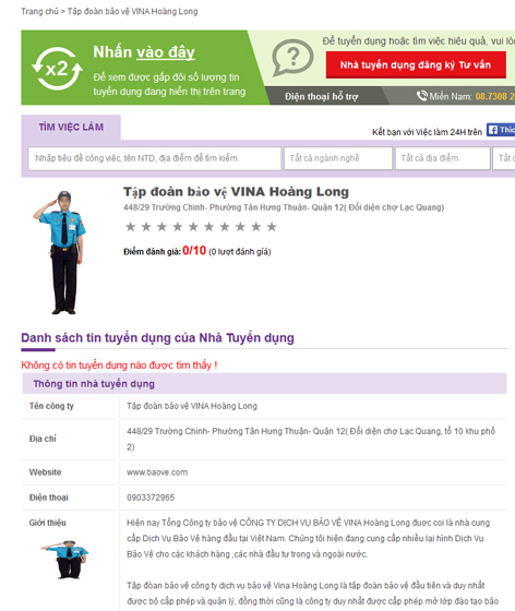 Một trang Quảng cáo tuyển dụng bảo vệ lợi dụng hình ảnh của Bảo vệ Ngày & Đêm