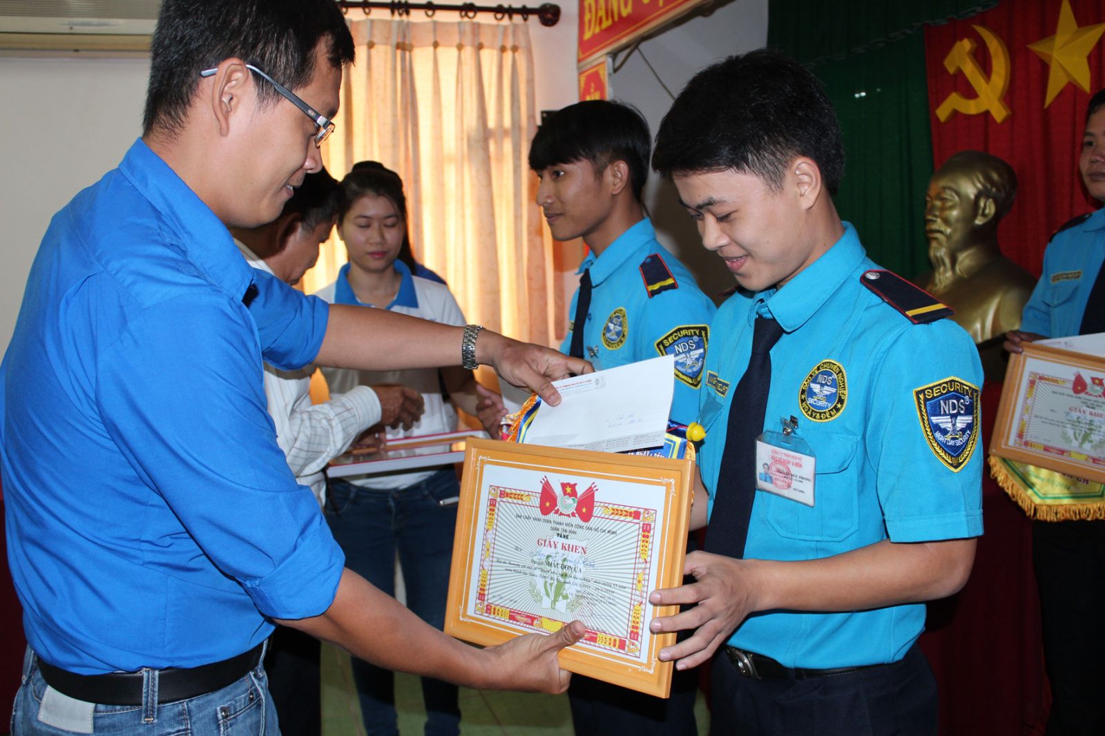 Đ/c Nguyễn Thùy Dương – Phó bí thư Chi đoàn trao giải ba và giải khuyến khích