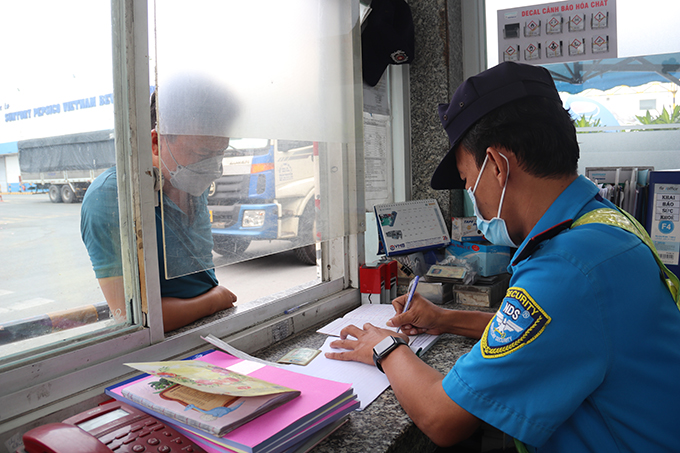 Tranh thủ thời gian giải lao giữa ca trực, cuộc trò chuyện ngắn giữa chúng tôi và anh Vinh diễn ra nhanh chóng. Phạm Hữu Vinh giới thiệu quê anh ở Cà Mau, anh đã lập gia đình và con nhỏ, vợ anh làm công nhân ở gần nhà để có thời gian chăm sóc con và gia đình. Ở TP.HCM anh Vinh được Công ty bảo vệ Ngày & Đêm hỗ trợ chỗ ở miễn phí, đội chủ động bố trí thời gian trực hợp lý để anh có thể về thăm gia đình. Chia sẻ trải nghiệm của mình về thời gian diễn biến phức tạp của đại dịch Covid 19, anh Vinh không khỏi bồi hồi “Trong những ngày đó vợ em và gia đình ai cũng lo, thường xuyên gọi điện thoại động viên, thăm hỏi. Rất may thời gian đó anh em bảo vệ thực hiện 3 tại chỗ nên tụi em được tạo những điều kiện tốt nhất để an toàn làm việc, một điều may mắn nữa là anh em bảo vệ đã không mất việc làm như nhiều người khác trước ảnh hưởng của dịch bệnh”. Anh Vinh cho biết thêm tại mục tiêu bảo vệ nhà máy Suntory PepsiCo Việt Nam, anh và các đồng nghiệp bảo vệ luôn giữ được sự quí mến của khách hàng, chính điều đó đã khiến các anh thêm tự tin và gắn bó với công việc.