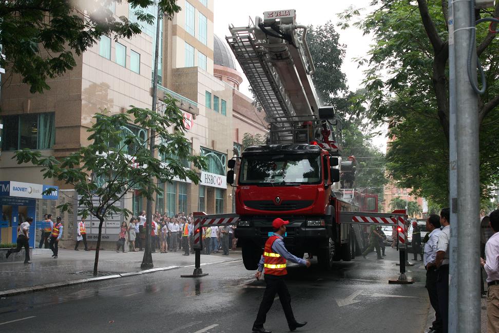 Nhằm chuẩn bị tốt nhất công tác an toàn cháy nổ có thể xảy ra với phương châm 4 tại chỗ “Chỉ huy tại chỗ, lực lượng tại chỗ, phương tiện tại chỗ, vật tư hậu cần tại chỗ”, buổi diễn tập được diễn ra theo nội dung kịch bản được lực lượng PCCC tại chỗ gồm lực lượng Bảo vệ Ngày & Đêm và Đội PCCC tòa nhà, khi phát hiện đám cháy lực lượng PCCC đã bấm chuông báo động, huy động lực lượng cứu hộ, di chuyển người bị thương… Cảnh sát PCCC huy động xe cứu hỏa ứng cứu kịp thời phối hợp khống chế đám cháy.