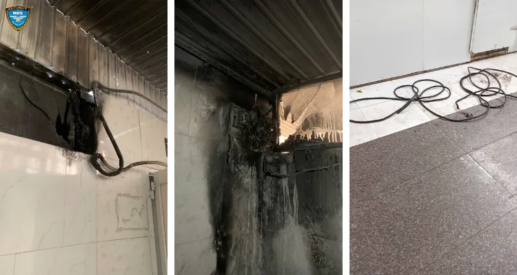 Also on 06/03/2025 at 09:10 at the factory where the Night & Day Security was on duty, a fire occurred in the area near the company’s quality inspection room. The initial cause was determined to be an electrical short. During the patrol, security guards detected smoke rising from this area. Immediately, the security guard quickly reported the incident to the captain, and quickly used the on-site fire extinguisher to control and extinguish the fire successfully.