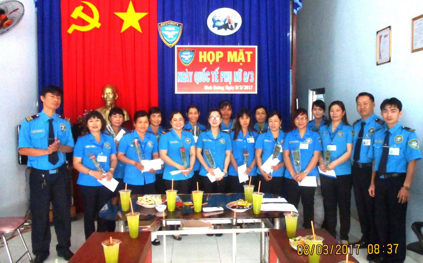 Cũng nhân dịp này, ngày 08/03/2017 Ban giám đốc, Ban chấp hành công đoàn, chi hội phụ nữ, chi đoàn Thanh Niên chi nhánh công ty TNHH DV Bảo vệ Ngày & Đêm tại Mỹ Phước – Bình Dương tổ chức họp mặt thân mật. Tại buổi họp mặt đồng chí Nguyễn Thành Chơn – Phó giám đốc chi nhánh biểu dương tinh thần làm việc cán bộ nhân viên nữ. Thay mặt lãnh đạo chi nhánh công ty gửi lời chúc tốt đẹp và tặng hoa và quà cho toàn thể các chị em vệ sĩ thuộc chi nhánh NDS Mỹ Phước – Bình Dương.