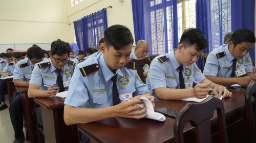 Nhân viên Bảo vệ Ngày & Đêm làm bài thi sát hạch cấp chứng chỉ nghiệp vụ bảo vệ