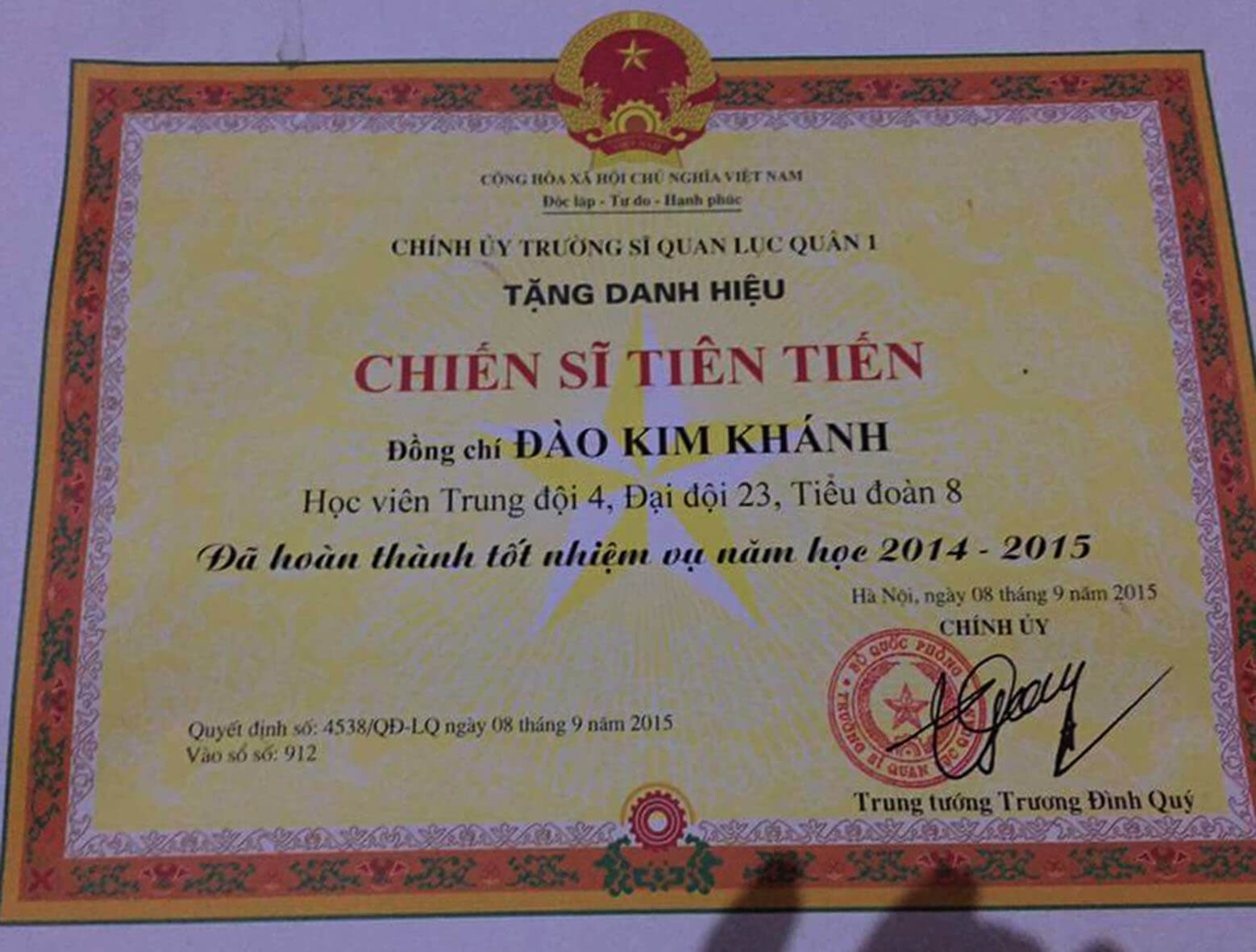 Một trong những thành tích học tập của Đào Kim Khánh