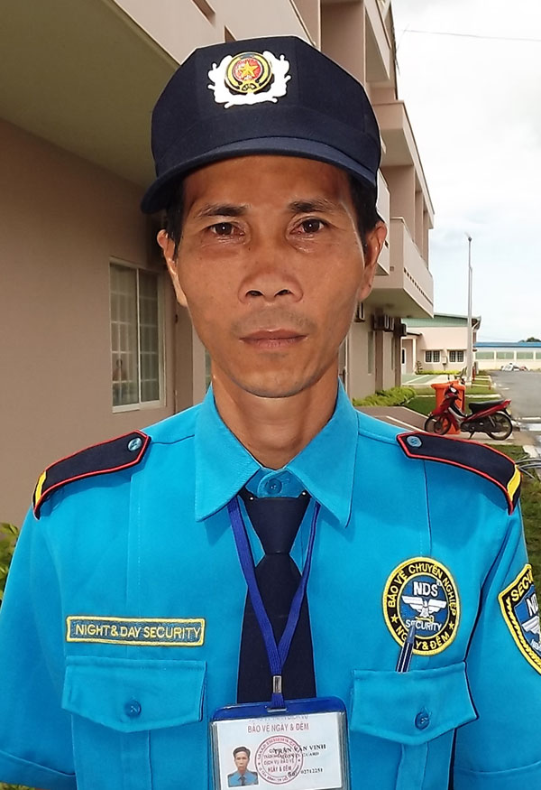 Different with Ms Thuy and Ms Qui, Shift-leader Le Van Vinh has a special feature, he is Khmer-Vietnamese, fluent in  two languages in Vietnamese and Cambodian. With a robust stature, tawny complexion and honest smile, Mr Vinh told us about his life, that of Night & Day Security guards at the security targets. For Night & Day Security, Vinh considers it as his second home, as for him, working in the good environment, having opportunities to promote and stable income, and especially working near his home, Vinh is wholehearted with his work. It is his effort that the  board of directors has appointed him a shift-leader at the security target.