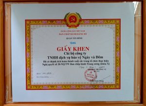 Chi bộ Công ty Bảo vệ Ngày & Đêm nhận giấy khen do Quận ủy Tân Bình trao tặng
