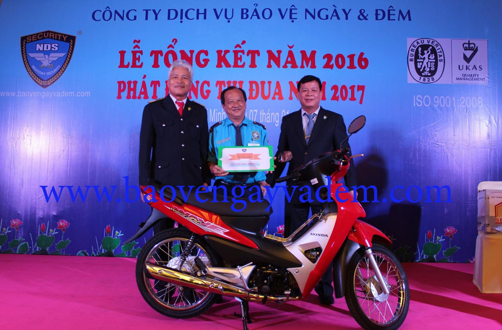 Tại buổi lễ, Bảo vệ Ngày & Đêm đã vinh danh gần 400 cá nhân đạt danh hiệu “Lao động tiên tiến cấp sơ sở” là những nhân viên bảo vệ trực tiếp phục vụ khách hàng có thành tích hoàn thành suất sắc nhiệm vụ và có thâm niên trên 5 năm công tác tại Công ty Bảo vệ Ngày & Đêm. Cũng tại buổi lễ, Bảo vệ Ngày & Đêm tổ chức bốc thăm trúng thưởng cho cán bộ nhân viên với hơn 60 giải thưởng có giá trị từ 500 ngàn đồng đến 5 triệu đồng, trong đó giải đặc biệt là xe máy Honda Ware 110 trị giá hơn 20 triệu đồng.