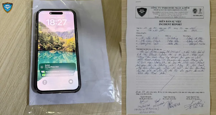 Không dừng lại ở đó, vào ngày 06/03/2025, trong ca trực của mình, đồng chí Lê Văn Nhí lại tiếp tục phát hiện một chiếc iPhone 15 Pro Max bị bỏ quên tại khu vực công cộng của tòa nhà. Anh nhanh chóng trình báo với Ban Quản Lý và tiến hành xác minh chủ nhân của chiếc điện thoại thông qua hệ thống giám sát. Sau quá trình đối chiếu, chiếc điện thoại đã được trao trả tận tay người đánh rơi.